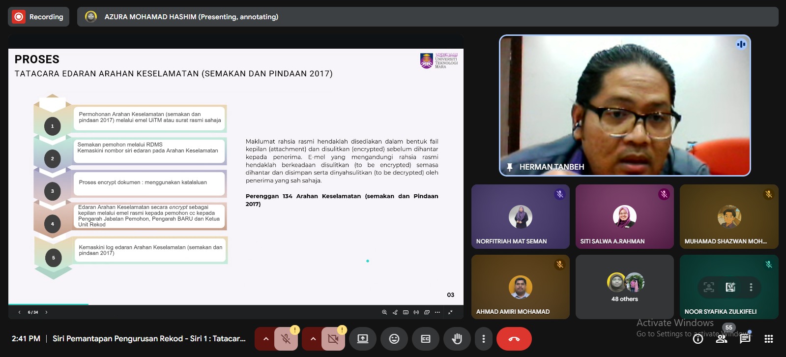 Pengisian siri ini merangkumi topik Tatacara Edaran Arahan Keselamatan (Semakan dan Pindaan 2017) serta Repositori Memori UiTM.